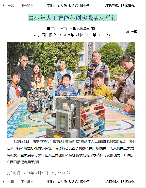 广西日报报道“邕”有AI 智启新程——南宁市青少年人工智能科创实践活动